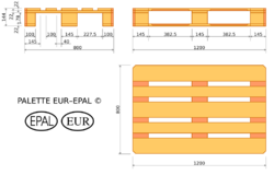 | EUR 2 | 1,200 mm × 1,000 mm × 144 mm 47.24 in × 39.37 in × 5.67 in |