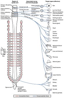 Acetylcholine is the neurotransmitter used at the neuromuscular junction—in other words, it is the chemical that motor neurons of the nervous system release in order to activate muscles. This property means that drugs that affect cholinergic systems can have very dangerous effects ranging from paralysis to convulsions. Acetylcholine is also a neurotransmitter in the autonomic nervous system, both as an internal transmitter for the sympathetic nervous system and as the final product released by the parasympathetic nervous system.[1] Acetylcholine is the primary neurotransmitter of the parasympathetic nervous system.[2][3]