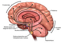 Damage to the cholinergic (acetylcholine-producing) system in the brain has been shown to be associated with the memory deficits associated with Alzheimer's disease.[16] ACh has also been shown to promote REM sleep.[17]