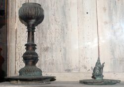 Old table lamps at Archaeological Museum, Sri Lanka