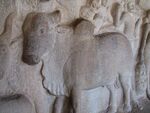 The interdiction of the meat of the bounteous cow as food was regarded as the first step to total vegetarianism.[20] Dairy cows are called aghnya "that which may not be slaughtered" in Rigveda. Yaska, the early commentator of the Rigveda, gives nine names for cow, the first being "aghnya".[21] According to Harris, the literature relating to cow veneration became common in 1st millennium CE, and by about 1000 CE vegetarianism, along with a taboo against beef, became a well accepted mainstream Hindu tradition.[8] This practice was inspired by the beliefs in Hinduism that a soul is present in all living beings, life in all its forms is interconnected, and non-violence towards all creatures is the highest ethical value.[8][9] The god Krishna and his Yadav kinsmen are associated with cows, adding to its endearment.[8][9]