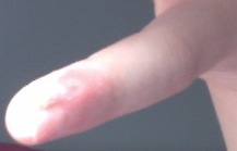 A corn (or clavus, plural clavi or clavuses) is a distinctively shaped callus of dead skin that usually occurs on thin or glabrous (hairless and smooth) skin surfaces, especially on the dorsal surface of toes or fingers. They can sometimes occur on the thicker skin of the palms or bottom of the feet.