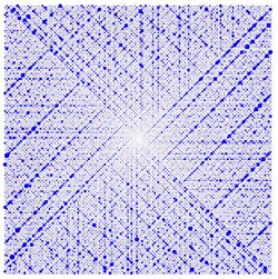 This is the Ulam spiral, which illustrates the distribution of prime numbers. The dark diagonal lines in the spiral hint at the hypothesized approximate independence between being prime and being a value of a quadratic polynomial, a conjecture now known as Hardy and Littlewood's Conjecture F.