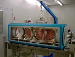 Once pumped and ready for firing, a small pulse of laser light is fed into the beamlines. The Nd:glass disks each dump additional power into the beam as it passes through them. After passing through a number of amplifiers the light pulse is "cleaned up" in a spatial filter before being fed into another series of amplifiers. At each stage additional optics were used to increase the diameter of the beam and allow the use of larger and larger amplifier disks. In total, Nova contained fifteen amplifiers and five filters of increasing size in the beamlines,[11] with an option to add an additional amplifier on the last stage, although it is not clear if these were used in practice.