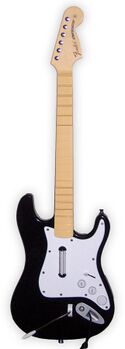 The game features special Rock Band-branded guitar controllers modeled after the Fender Stratocaster to be used for the lead and bass guitar gameplay. These are similar to the Guitar Hero controllers, as they feature five colored fret buttons on the neck, a strum bar, and a whammy bar. The Stratocaster controller has five additional fret buttons of smaller size located closer to the guitar's main body. These buttons can be used to play notes in guitar solos (denoted by the note track turning blue) as hammer-ons and pull-offs, without the need to strum.[11] Additionally, the controller features an effects pickup switch that can toggle between five different effects, which are applied in solos and when Overdrive is activated. Overdrive for guitarists can be deployed by holding the controller in a vertical position or pressing the "Select/Back" button. The controller is offered in both wired and wireless versions.[14] Harmonix confirmed most Guitar Hero guitar controllers and additional third-party controllers are compatible with the game.[11][14] The Stratocaster controller is not compatible with Guitar Hero II or III.