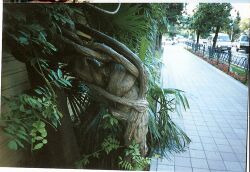 Vines are unique in that they have multiple evolutionary origins. They usually reside in tropical locations and have the unique ability to climb. Vines are able to grow in both deep shade and full sun due to their uniquely wide range of phenotypic plasticity. This climbing action prevents shading by neighbors and allows the vine to grow out of reach of herbivores.[16] The environment where a vine can grow successfully is determined by the climbing mechanism of a vine and how far it can spread across supports. There are many theories supporting the idea that photosynthetic responses are closely related to climbing mechanisms.