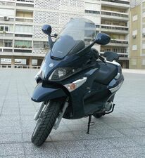 A maxi-scooter[70] or touring scooter[71] is a large scooter, with engines ranging in size from 150 to 850 cc (9.2 to 51.9 cu in), and using larger frames than normal scooters with longer wheelbases. Typically, the dash is fixed & is not mounted on the handlebars