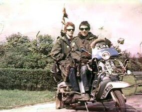 Scooters were also a practical and accessible form of transportation for 1960s teens. In the early 1960s, public transport stopped relatively early in the night, and so having scooters allowed mods to stay out all night at dance clubs. To keep their expensive suits clean and keep warm while riding, mods often wore long army parkas. For teens with low-end jobs, scooters were cheaper than cars, and they could be bought on a payment plan through newly available hire purchase plans. After a law was passed requiring at least one mirror be attached to every motorcycle, mods were known to add four, ten, or as many as 30 mirrors to their scooters. The cover of The Who's album Quadrophenia, which includes themes related to mods and rockers, depicts a young man on a Vespa GS with four mirrors attached.[85] The album spawned a 1979 motion picture of the same name.