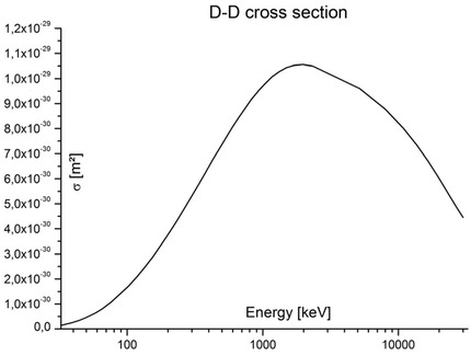 A reaction's cross section, denoted σ, measures the probability that a fusion reaction will happen. This depends on the relative velocity of the two nuclei. Higher relative velocities generally increase the probability, but the probability begins to decrease again at very high energies.[5]