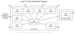 A typical IXP consists of one or more network switches, to which each of the participating ISPs connect. Prior to the existence of switches, IXPs typically employed fiber-optic inter-repeater link (FOIRL) hubs or Fiber Distributed Data Interface (FDDI) rings, migrating to Ethernet and FDDI switches as those became available in 1993 and 1994.