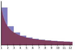 The area of the blue region converges to the Euler–Mascheroni constant, which may or may not be a rational number.