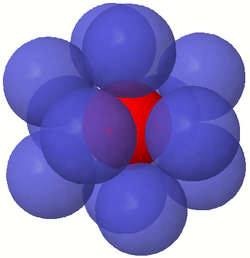 In three dimensions, the kissing number is 12, because 12 non-overlapping unit spheres can be put into contact with a central unit sphere. (Here, the centers of outer spheres form the vertices of a regular icosahedron.) Kissing numbers are only known exactly in dimensions 1, 2, 3, 4, 8 and 24.