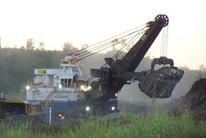 Excavation was done with shovels until the late 19th century when steam shovels came into use. It was reported that a laborer on the western division of the Erie Canal was expected to dig 5 cubic yards per day in 1860; however, by 1890 only 3-1/2 yards per day were expected.[17] Today's large electric shovels have buckets that can hold 168 cubic meters (220 cubic yards) and consume the power of a city of 100,000.[18]