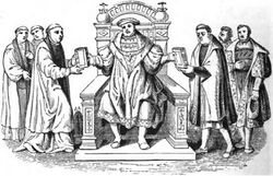 The idea that the council called to remove all polyphony from the Church is widespread, but there is no documentary evidence to support that claim. It is possible, however, that some of the Fathers had proposed such a measure.[56] The emperor Ferdinand I, Holy Roman Emperor has been attributed to be the "saviour of Church music" because he said polyphony ought not to be driven out of the Church. But Ferdinand was most likely an alarmist and read into the council the possibility of a total ban on polyphony.[57] The Council of Trent did not focus on the style of music but on attitudes of worship and reverence during the Mass.[47]:576