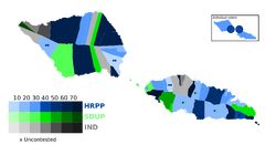 2006 – The Human Rights Protection Party, led by Tuilaʻepa Saʻilele Malielegaoi, won a landslide victory, winning 33 seats, an increase of ten. The main opposition party, the new Samoa Democratic United Party, won 10 seats.[15]