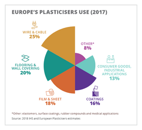 Plasticizers for polymers are either liquids with low volatility or solids. According to 2017 data, the total global market for plasticizers was 7.5 million metric tonnes. In North America the 2017 volume was ~1.01 million metric tonnes and in Europe the figure was 1.35 million metric tonnes, split between various end-use applications with a chemical type trend moving to higher molecular weight (HMW) orthophthalates and alternative types following regulatory issues concerning lower molecular weight (LMW) orthophthalates.