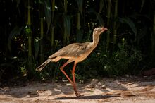 Most birds found in the Cerrado breed there although there are some Austral migrants (breed in temperate South America and winter in the Amazon basin) and Nearctic migrants (breed in temperate North America and winter in the Neotropics) that pass through.[18] Most breeding birds in the Cerrado are found in more closed canopy areas like gallery forests although 27% of the birds breed only in open habitats and 21% breed in either open or closed habitats.[18] Many of the birds in the Cerrado, especially those found in closed forest, are related to species from the Atlantic rainforest and also the Amazon rainforest.[19] The crowned solitary eagle, hyacinth macaw, toco toucan, buff-necked ibis, dwarf tinamou, and Brazilian merganser are examples of birds found in the Cerrado.