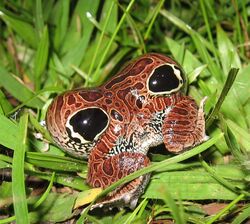 The Cerrado has a high diversity of vertebrates, with 150 amphibian species, 120 reptile species, 837 bird species, and 161 mammal species recorded.[14] Lizard diversity is generally thought to be relatively low in the Cerrado compared to other areas like caatinga or lowland rainforest,[15] although one recent study found 57 species in one cerrado area with the high diversity driven by the availability of open habitat.[16] Ameiva ameiva is among the largest lizards found in the Cerrado and is the most important lizard predator where it is found in the Cerrado.[15] There is a relatively high diversity of snakes in the Cerrado (22–61 species, depending on site) with Colubridae being the richest family.[17] The open nature of the cerrado vegetation most likely contributes to the high diversity of snakes.[17] Information about Cerrado amphibians is extremely limited, although the Cerrado probably has a unique assemblage of species with some endemic to the region.[13]