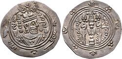 In 716, the Dabuyid ruler Farrukhan the Great (r. 712–728) successfully contained a large-scale invasion by the Umayyad general Yazid ibn al-Muhallab.[10] Farrukhan's son and successor Dadhburzmihr (r. 720–740) may have temporarily lost control of Tabaristan to the Arabs, as indicated by his lack of coinage. However, this may also mean the Dabuyids lacked funds to circulate throughout their realm.[12]