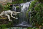 One of the Ladies reaching out for something, in front of part of the water cascade