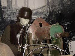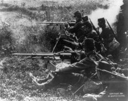 Heavy guns based on the Maxim such as the Vickers machine gun were joined by many other machine weapons, which mostly had their start in the early 20th century such as the Hotchkiss machine gun. Submachine guns (e.g., the German MP 18) as well as lighter machine guns (the first light machine gun deployed in any significant number being the Madsen machine gun, with the Chauchat and Lewis gun soon following) saw their first major use in World War I, along with heavy use of large-caliber machine guns. The biggest single cause of casualties in World War I was actually artillery, but combined with wire entanglements, machine guns earned a fearsome reputation.