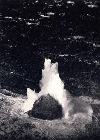 In 1956 the British scientist James Fisher referred to the island as "the most isolated small rock in the oceans of the world".[56] The neighbouring Hasselwood Rock and several other pinnacles of the surrounding Helen's Reef are smaller, at half the size of Rockall or less, and equally remote, but those formations are legally not islands or points on land, as they are often submerged completely, only revealed momentarily above certain types of ocean surface waves.