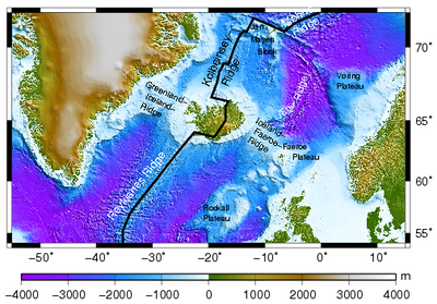 Rockall forms part of the deeply eroded Rockall Igneous Centre that was formed as part of the North Atlantic Igneous Province.[72] It was formed approximately 52 ± 8 million years ago based on rubidium–strontium dating,[73] as part of the breakup of Laurasia. Greenland and Europe separated and the northeast Atlantic Ocean was formed between them,[69] eventually leaving Rockall as an isolated islet.
