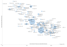 The term "lowest-low fertility" is defined as TFR at or below 1.3.[10] This is characteristic of some Eastern European, Southern European, and East Asian countries.[11] For example, in 2001, more than half of the population of Europe lived in countries with the lowest-low TFR, although TFRs there have increased slightly since then.[12]