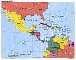 Middle America is a region in the mid-latitudes of the Americas. In southern North America, it usually comprises Mexico, the nations of Central America, and the Caribbean. In northern South America, it usually comprises Colombia and Venezuela. The Caribbean is occasionally excluded from the region, and the Guianas are infrequently included.[2][3][4]