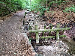 From Handwiki Klingen are small, narrow, steep V-shaped valleys formed by the erosive forces of water and suspended abrasive particles, gravel and pebbles. They are usually side valleys without a discernible valley floor that lead into a main valley. Further incision through ablation and headward erosion is mainly caused by the waters of small, steep, fast flowing, streams or becks and their processes are still visible today. Erosion, sedimentation and transport are mutually dependent. The term klinge is German and is used to refer to European stream landforms, especially in southern Germany and eastern France.