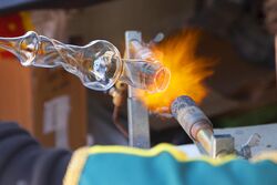 Glass is an important material in scientific laboratories for the manufacture of experimental apparatus because it is relatively cheap, readily formed into required shapes for experiment, easy to keep clean, can withstand heat and cold treatment, is generally non-reactive with many reagents, and its transparency allows for the observation of chemical reactions and processes.[139][140] Laboratory glassware applications include flasks, petri dishes, test tubes, pipettes, graduated cylinders, glass lined metallic containers for chemical processing, fractionation columns, glass pipes, Schlenk lines, gauges, and thermometers.[141][139] Although most standard laboratory glassware has been mass-produced since the 1920s, scientists still employ skilled glassblowers to manufacture bespoke glass apparatus for their experimental requirements.[142]