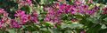 It is sterile, which means it does not generally produce seeds or fruits, and is a hybrid between Bauhinia variegata and Bauhinia purpurea.[4][5] The 2008 research was able to identify the female parent as Bauhinia purpurea, but it could not differentiate the male parent from Bauhinia variegata var. variegata or Bauhinia variegata var. candida. This is not unexpected, as Bauhinia variegata var. candida is a white-flowered form of Bauhinia variegata var. variegata, and not a separate species or sub-species. The 2005 research suggested Bauhinia × blakeana is genetically closer to Bauhinia variegata, while the 2008 research indicated it is closer to Bauhinia purpurea instead.