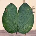 The Bauhinia double-lobed leaf is similar in shape to a heart or a butterfly, or a camel's footprint - hence the common name camel's foot.[citation needed] A typical leaf is 7 to 10 centimetres (2.8 to 3.9 in) long and 10 to 13 centimetres (3.9 to 5.1 in) wide, with a deep cleft dividing the apex. In Hong Kong the leaf is known as the "clever leaf" (聰明葉; chūngmìhng yihp), and is regarded as a symbol of wisdom. Some people use the leaves to make bookmarks in the hope that they will bring them good luck in their studies.