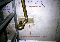 Where a volume of water may be rapidly discharged through the trap, a vertical vented pipe called a standpipe may be attached to the trap to prevent the disruption of the seal in other nearby traps.[1] The most common use of standpipes in houses is for clothes washing machines, which rapidly dispense a large volume of wastewater while draining the wash and rinse cycles.[2]