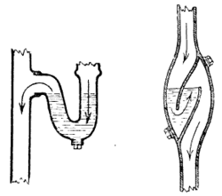 In plumbing, a trap is a U-shaped portion of pipe designed to trap liquid or gas to prevent unwanted flow; most notably sewer gases from entering buildings while allowing waste materials to pass through. In oil refineries, traps are used to prevent hydrocarbons and other dangerous gases and chemical fumes from escaping through drains. In heating systems, the same feature is used to prevent thermo-siphoning which would allow heat to escape to locations where it is not wanted. Similarly, some pressure gauges are connected to systems using U bends to maintain a local gas while the system uses liquid. For decorative effect, they can be disguised as complete loops of pipe, creating more than one U for added efficacy.