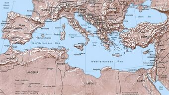the delineation between Africa, Asia, and Europe in the Mediterranean Sea;