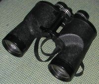 From Conservapedia Binoculars are an optical aid used to view distant objects with both eyes, such as scenery, wildlife, or far off boats or ships. They can also be employed in basic astronomy, in lieu of a telescope.