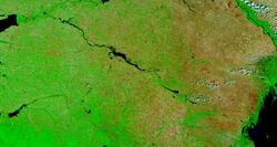 Rivers: Through the center runs the northwest-tending Kuma-Manych Depression. This was once a strait connecting the Black and Caspian Seas and is now marked by the Manych River which is basically a chain of lakes. It will probably be the route of the Eurasia Canal if that great engineering work is ever built. In the south the rivers that flow north from the Caucasus are caught by the west-flowing Kuban River and the east-flowing Terek River. Between these the rivers are caught by the Malka River which is an east-flowing tributary of the Terek. In the west, since the Caucasus Mountains run parallel and close to the Black Sea coast, no significant rivers from this area reach the Black Sea. The western point is the Taman Peninsula. North of the Taman Peninsula the Kuban River, the Beysug River and the Yeya Rivers reach the Sea of Azov, and the long Manych River and the shorter Sal River reach the lower Don. In the north much of the lower Don is under the Tsimlyansk Reservoir and the Volga has a broad flood plain and a large delta. North of the Manych Depression the low Ergeni Highland forms the watershed between the Don and Volga. It drops off quickly to the Caspian Depression. To the east of this the Sarpinsky Lakes are a chain of lakes in Kalmykia that would be a north-flowing river if there were more rainfall. On the east the only important rivers that reach the Caspian are the Volga, Kuma River and the Terek. In the center the Yegorlyk River and Kalaus River flow north to the Manych and the Kuma River flows northeast to the Caspian. In the east there are many shallow lakes. Since the land is flat and the rainfall barely sufficient for agriculture there are important irrigation canals, most leading from the Caucasus peidmont to the Manych Depression. The Great Stavropol Canal leads northeast from the Kuban to the Kalaus and beyond and the Nevinnomyssk Canal runs from the Kuban to the Egorlyk. The Kuma-Manych Canal feeds water from the Kuma to the East Manych and Chyornozemsky Canal irrigates the interior of Kalmykia. There numerous canals around the lower Terek.