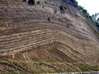 Tuffs are deposited geologically instantaneously and often over a large region. This makes them highly useful as time-stratigraphic markers. The use of tuffs and other tephra deposits in this manner is known as tephrochronology and is particularly useful for Quaternary chronostratigraphy. Individual tuff beds can be "fingerprinted" by their chemical composition and phenocryst assemblages.[64] Absolute ages for tuff beds can be determined by K-Ar, Ar-Ar, or carbon-14 dating.[65] Zircon grains found in many tuffs are highly durable and can survive even metamorphism of the host tuff to schist, allowing absolute ages to be assigned to ancient metamorphic rocks. For example, dating of zircons in a metamorphosed tuff bed in the Pilar Formation provided some of the first evidence for the Picuris orogeny.[66]