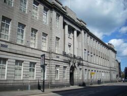 By far the largest of the halls of residence are the Woolmanhill Flats at St. Andrew Street. The Woolmanhill flats have over 700 one-person bedrooms, arranged in self-catering flats of up to eight.[55] The Woolmanhill Flats development was constructed in stages in the late 1980s and early 1990s by the university working in collaboration with a private developer.[56] The newest hall of residence is the Crathie Student Village on Holburn Street, and houses approximately 100 students.