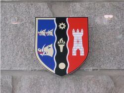 The coat of arms derives from the one issued by the Lord Lyon King of Arms (the state official responsible for heraldry in Scotland) to Robert Gordon's Institute of Technology in 1982, which in turn derives from that first used in 1881 by the governors of Robert Gordon's Hospital when it became Robert Gordon's College.[5] The arms consist of a shield only and are used infrequently, usually at formal occasions such as graduation, and can also be seen over the main entrance to the university's Administration Building at Schoolhill and various academic buildings at the main campus at Garthdee. The shield also formed the previous logo which still features on some older signage.