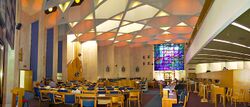 A beth midrash (Hebrew: בית מדרש, "House of Learning"; pl.: batei midrash), also beis medrash or beit midrash, is a hall dedicated for Torah study, often translated as a "study hall".[1] It is distinct from a synagogue (beth knesseth), although the two are often coextensive. In Yiddish the beth midrash may be referred to as a zal, i.e. "hall". Beis midrash can also refer to a yeshiva gedolah, the undergraduate-level program in Orthodox, for boys over 12th grade.[2]