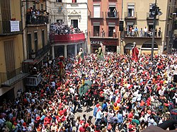 The Patum de Berga is a popular and traditional festival that is celebrated each year in the Catalan city of Berga (Barcelona) during Corpus Christi. It consists of a series of "dances" (balls) by townspeople dressed as mystical and symbolical figures. The balls are marked by their solemnity and their ample use of fire and pyrotechnics. It was declared a Traditional Festival of National Interest by the Generalitat de Catalunya in 1983, and as a Masterpiece of the Oral and Intangible Heritage of Humanity by UNESCO in 2005.[29]
