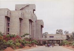 In 1948 a University Education Commission had been started under S. Radhakrishnan with members that included Zakir Hussain and the American educationist J.J. Tigert, and Arthur Ernest Morgan. They examined the Land-Grant colleges of the United States as a potential model for rural and agricultural education. This recommendation was taken up in 1961 with the formation of an Indo-American team to develop the universities and their curriculum. This resulted in a first Joint Indo-American team in 1954 that studied American universities leading to US-AID supported collaboration between American and Indian universities. A second team was established in 1959 that made recommendations to make agricultural universities autonomous and to have veterinary, home science, and agricultural education on a single campus with integrated teaching, extension and research. This was followed by a committee headed by Ralph W. Cummings of the Rockefeller Foundation, along with Ephraim Hixon of the USAID, L. Sahai (Animal Husbandry Commissioner) and K.C. Naik as convener.[5] The then Mysore State Government through its Act No. 22 passed in 1963 provided for the creation of the University of Agricultural Sciences. The university came into existence on 21 August 1964 and was meant to serve the agricultural education needs of the state of Karnataka[2][3] with a campus that included the old experimental stations at Hebbal established by Lehmann and Coleman with an additional campus at GKVK added in 1969. K.C. Naik served as the first Vice Chancellor. The UAS was inaugurated on 21 August 1964 by Vice President of India Zakir Hussain in the presence of Chester Bowles, United States Ambassador to India and S. Nijalingappa, Chief Minister of Karnataka. On 12 July 1969, Prime Minister Indira Gandhi inaugurated GKVK campus with its buildings designed by the architect Achyut Kanvinde who was influenced by Walter Gropius.[2][3] The Ford Foundation made a grant of $331000 in 1966 to develop graduate research in entomology at the university.[5][6]