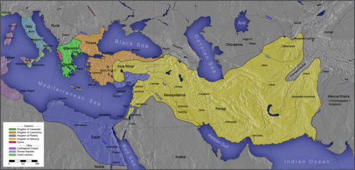 Greece itself was taken by Antigonus, but he faced the even stronger realms formed by the other two Diadochi. Ptolemy took all of Egypt and part of Anatolia, while Seleucus lucked out by taking all of Persia plus Mesopotamia plus a big chunk of Anatolia.[34] Each hoped to reunite Alexander's empire by defeating the others, and this naturally led to decades of war between 322 and 281 BCE.[38]
