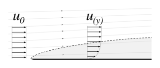 where θ is the tangent of the Poiseuille parabola intersecting the wall. Although Lévêque's solution was specific to heat transfer into a Poiseuille flow, his insight helped lead other scientists to an exact solution of the thermal boundary-layer problem.[19] Schuh observed that in a boundary-layer, u is again a linear function of y, but that in this case, the wall tangent is a function of x.[20] He expressed this with a modified version of Lévêque's profile,