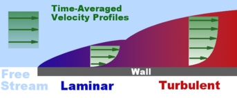 The viscous nature of airflow reduces the local velocities on a surface and is responsible for skin friction. The layer of air over the wing's surface that is slowed down or stopped by viscosity, is the boundary layer. There are two different types of boundary layer flow: laminar and turbulent.[1]