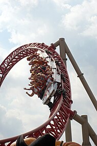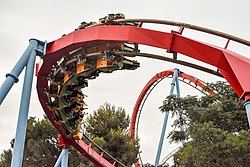 A zero-g roll or zero-gravity roll is a roller coaster inversion where the track twists 360 degrees as it rises and falls in elevation, usually at the crest of a hill. The element gets its name from the weightless effect of zero g-force that a rider experiences during the inversion.[44][45][46]