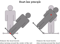 A heartline roll, also known as a barrel roll, is a roller coaster inversion in which the rider performs a 360-degree roll. The center of the train rotates on one axis. The track changes in elevation to keep the train moving in the same line in which it entered the element. In an in-line twist, a similar element, the track remains straight at the same elevation. The point of rotation is either above or below the rider's point of view, unlike a heartline roll which keeps the point of rotation near the middle. An example of this element is Colossus at Thorpe Park, which features five heartline rolls, or The Smiler, which has its first inversion as a heartline roll.
