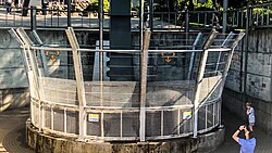 On Wing Coasters designed by Bolliger & Mabillard, keyhole elements are common. These elements feature both headchopper and foot chopper effects. The train seats riders in pairs on both sides of the track and passes through the center of an object, giving the illusion that the train and its passengers have just enough clearance to fit.[1][2]